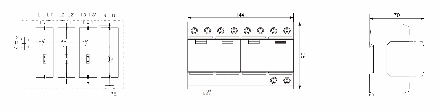 Lightning impulse current (10/350us) (L-N / N-PE) Iimp | 25kA / 100kA |
